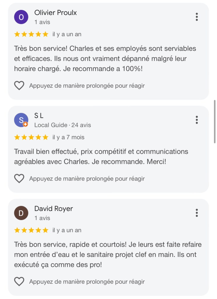 » Le marché de la plomberie est complexe, mais votre facture ne devrait pas l’être. En choisissant nos services, vous évitez les mauvaises surprises. Nous n’utilisons pas d’appels d’offres trompeurs ou de services « gratuits » qui cachent des frais de déplacement exorbitants. Vous payez pour une main-d’œuvre qualifiée et des pièces de première qualité. »